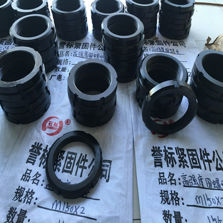 圓螺母常與圓螺母用止動墊圈配用,裝配時將墊圈內舌插入軸上的槽內,而將墊圈的外舌嵌入圓螺母的槽內,螺母即被鎖緊。常作為滾動軸承的軸向固定。